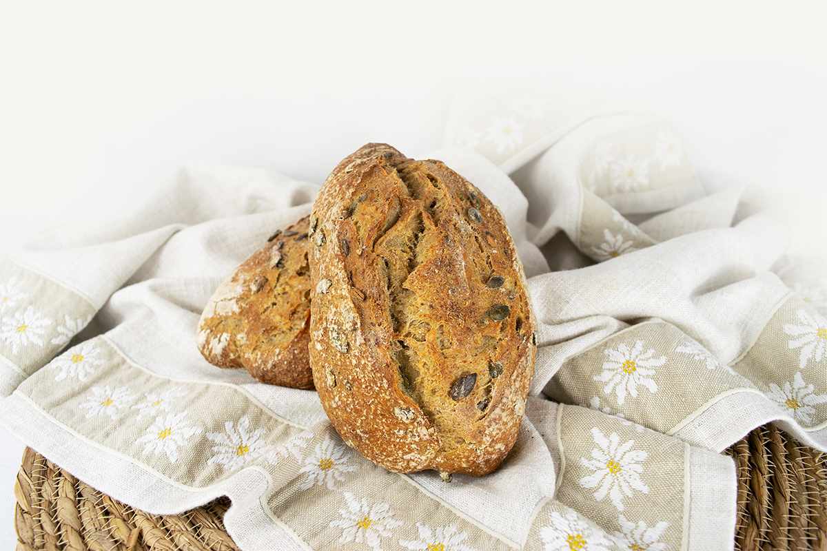 Bio Weizenmehl, Bio Roggenmehl, Bio Kürbiskerne, Bio Kürbiskernpresskuchen, Bio Weizenmalz, Grander-Wasser, Salz